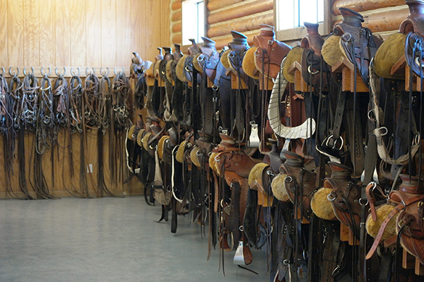 The Hideout’s tack room is a reflection of its philosophy—organized, professional, and built with care. Each saddle, bridle, and piece of gear is meticulously maintained and matched to both horse and rider, ensuring comfort, safety, and respect for the craft of true western horsemanship. This is no rental shed.
